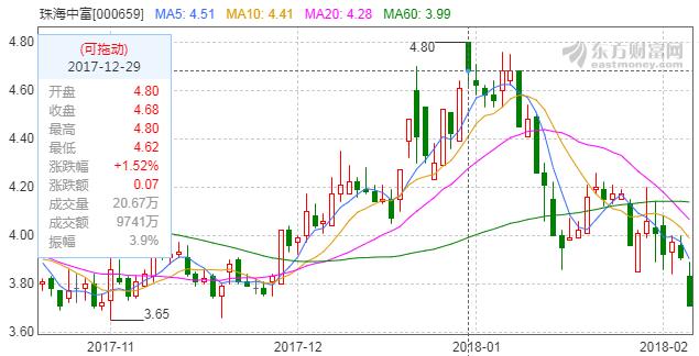 珠海中富,2017-12-29以及之前的K线。先是一根大阳线,然后跳空高开,但收成阴线,且收盘价和之前的阳线的收盘价差不多。