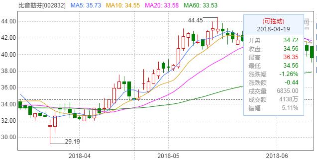 比音勒芬,2018-04-19。实体0.16,上影线1.63,下影线0。