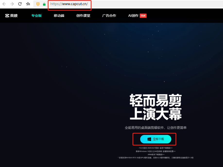 步骤一:打开剪映官网https://www.capcut.cn/