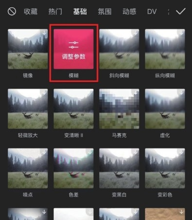 在“基础”分类下选择“模糊”效果,如图7-25所示,