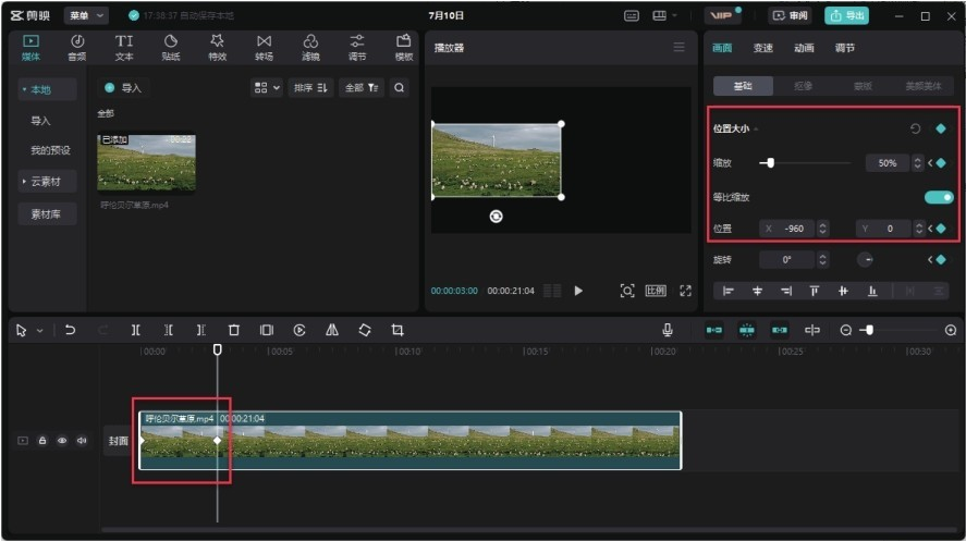 步骤 01 在剪映中导入名为“呼伦贝尔草原”的视频素材,将其添加至时间轴,如图14-39所示。
