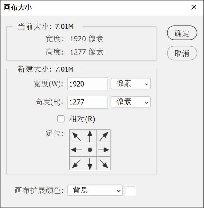 “定位”用于设定画布以哪个方向为起点进行延展或收缩。例如,若以中间为起点