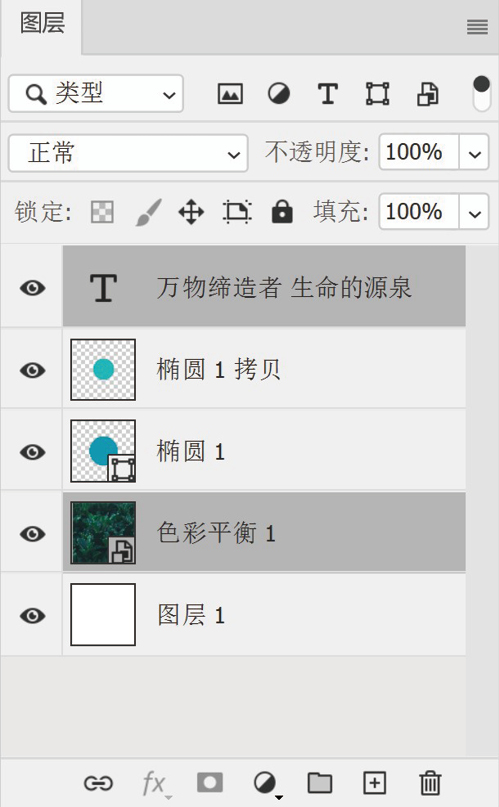 在“图层”面板中选中图层后可以更改图层的不透明度。以图3-8为例,将大圆图层的不透明度更改为50%。