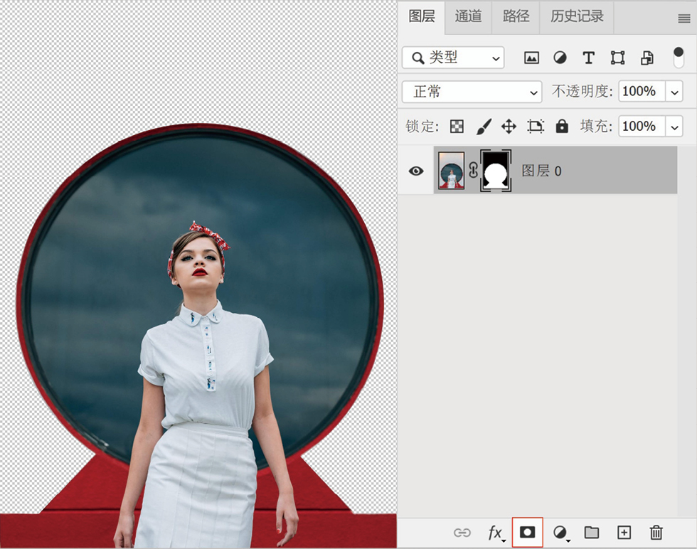 当需要对图层蒙版进行精准编辑时,可使用钢笔工具。在未添加图层蒙版之前,先用钢笔工具绘制路径,得到选区后再添加图层蒙版。此时,图层蒙版中的选区内部自动填充白色,选区外部自动填充黑色,这种方法常在抠图时使用。