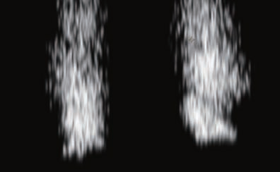 选择作为边界墙的蒙版约束粒子,效果如图10-1-14所示,左图为未受约束的粒子,右图为以蒙版为