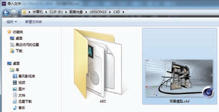After Effects可以导入C4D的场景文件,并加以处理和合成。方法非常简单,在【项目】窗口中双击,找到模型所在的文件夹,选择后导入即可。如图10-6-1即可。