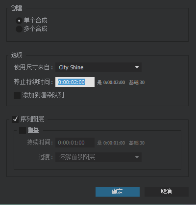 STEP 01 首先以PAL制新建一个2秒的合成,起名为“City Shine”。