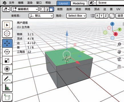 从物体模式切换到编辑模式才能正式开始建模,因为在编辑模式下才能修改模型的点、线、面。物体模式下的模型就像是