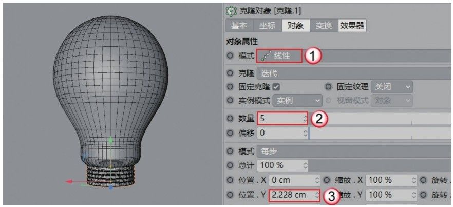 位置.X/位置.Y/位置.Z:设置复制对象之间的距离。