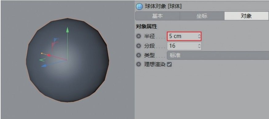 在场景中创建一个球体模型,设置“半径”为5cm,如图14-31所示。