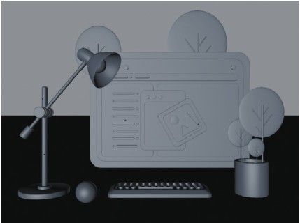 本案例的模型由网页模型、键盘模型、台灯模型和配景模型组成。