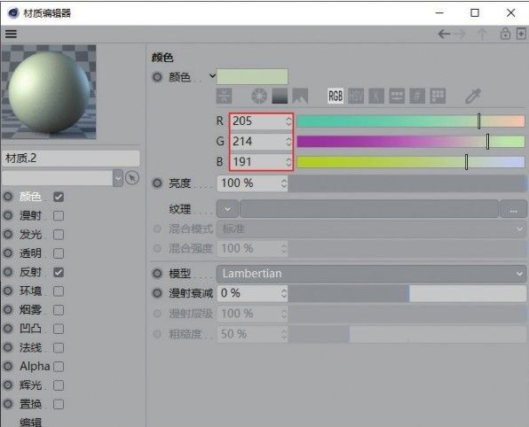 04 将材质复制一份,设置“颜色”为(R:205,G:214, B:191),如图16-174所示。材质效果如图16-175所示。