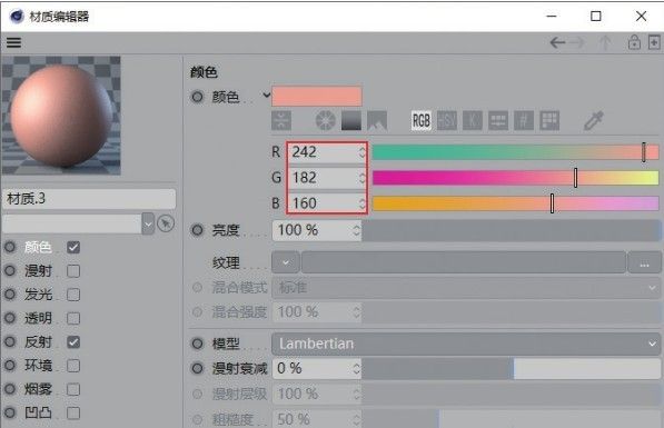 05 将材质复制一份,设置“颜色”为(R:242,G:182, B:160),如图16-176所示。材质效果如图16-177所示。
