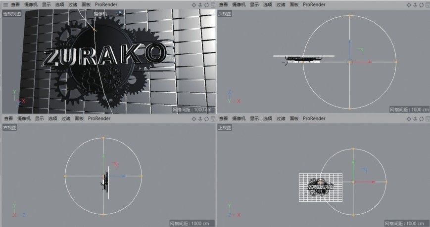 在场景中创建文本模型,设置“深度”为40cm,“文本”为ZURAKO,“字体”为Arial Black,“高度”为200cm,“水平间隔”为20cm,如图16-205所示。