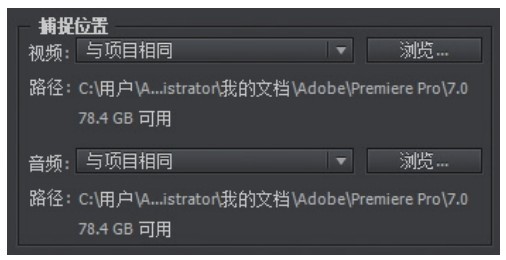 用于设置捕捉获取的视频、音频文件在计算机中的存放位置。在“捕捉位置”栏中有2个选项:视频和音频的存储位置的选择,如图5-3所示。可以通过单击“浏览”按钮更改存储路径。