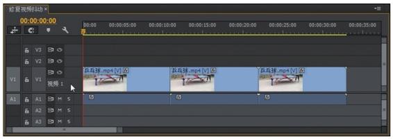 04 为方便进行稳定处理前后的效果对比,再将视频素材加入两次到时间轴窗口中,并依次排列在视频1轨道中,如图7-140所示。