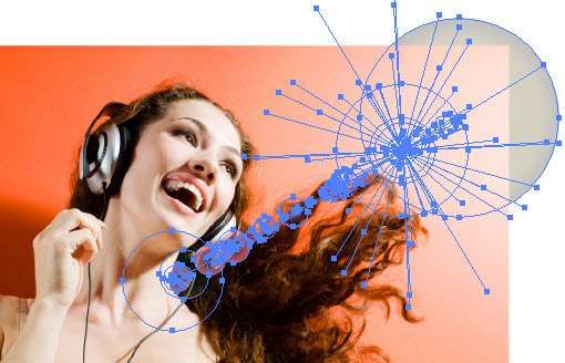 当在画板的另一处单击,放置末端手柄并添加光环时,拖曳鼠标可以移动光环;按↑键/↓键可增加/减少光环;按~键可随机放置光环。