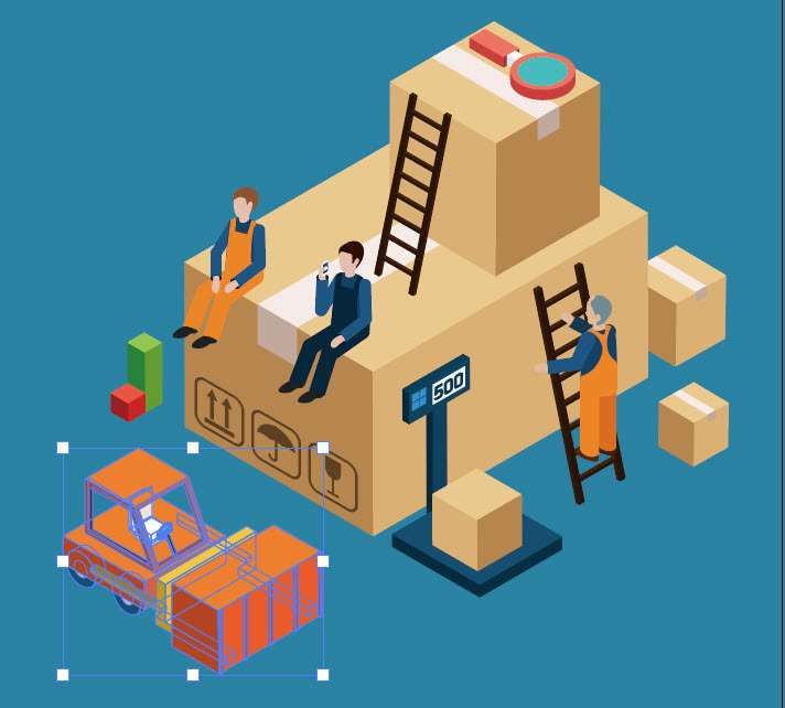 ,单击图2-117所示的图形,将其选取。它是矢量图形,可以随时添加和修改填色和描边属性。单击工具栏中的填色图标,如图2-118所示;之后单击“颜色参考”面板中的预设色板,即可修改填色,如图2-119和图2-120所示。