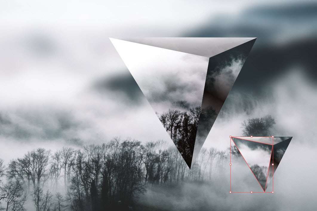 05 选取正面三角形,如图6-113所示,按Ctrl+B快捷键,在它下方粘贴图像,如图6-114所示。