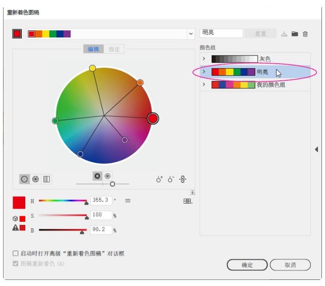 按钮,打开“重新着色图稿”对话框,这是一个完整版的“重新着色图稿”对话框的简化版本,可以进行一些简单的调色。例如,单击
