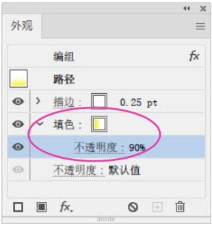 06 选取左侧的半圆环,填充线性渐变,如图16-70所示。设置填色不透明度为90%,如图16-71和图16-72所示。