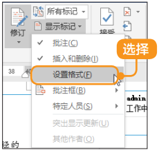 当用户需要有选择地显示批注时,可以在【审阅】选项卡下【修订】组中的【显示标记】下拉列表中选择相应的选项。如不需要显示针对格式所做的修订,撤销选择【设置格式】 选项即可(见下图) 。