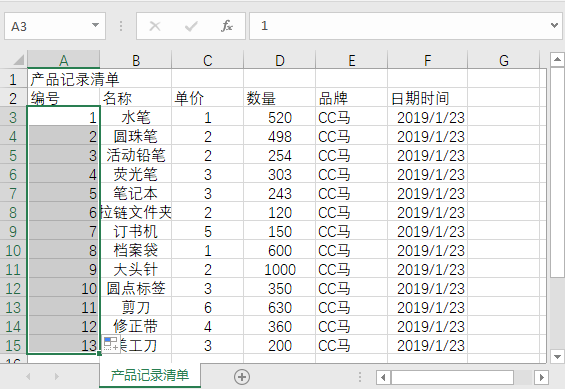 - 1.Excel 2019 基本操作 ——制作产品记录清单