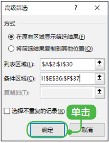 分别单击【列表区域】和【条件区域】文本框右侧的 按钮,设置列表区域和条件区域。设置完成后,单击【确定】按钮(见下图) 。