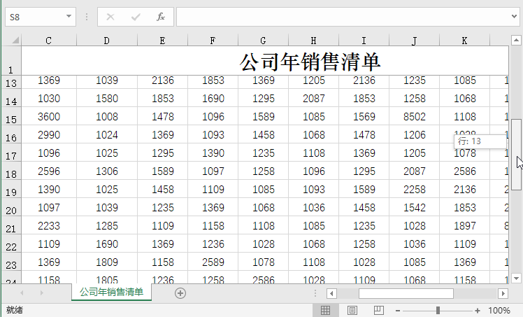 向下拖动垂直滚动条,首行会一直显示在当前窗口中(见下图) 。