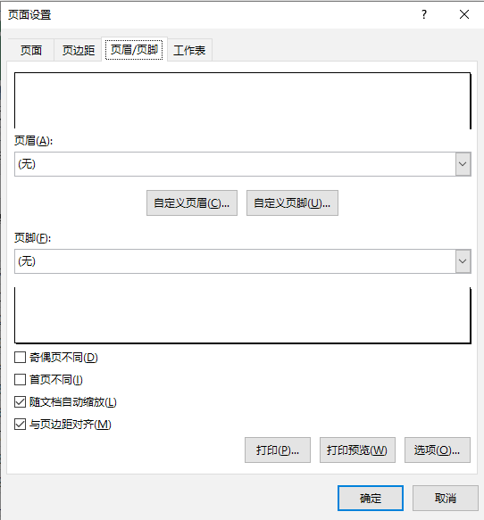 弹出【页面设置】对话框,选择【页眉 / 页脚】选项卡,从中可以添加、删除、更改和编辑页眉 / 页脚(见下图) 。
